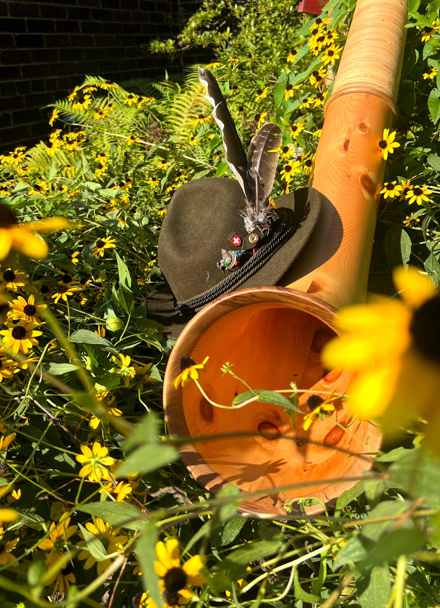 Roland Zahner, the craftsman of Helvetic, is the kind-hearted gentleman who built my Swiss stone pine Alphorn. I believe his quality of character can be heard in his beautiful horns. They have a warm vibrant sound, and feel light and nimble to play. When I first tried my horn, I felt I had found a kindred spirit, an expressive partner for this journey. Roland's horns are available through The Alphorn Institute.