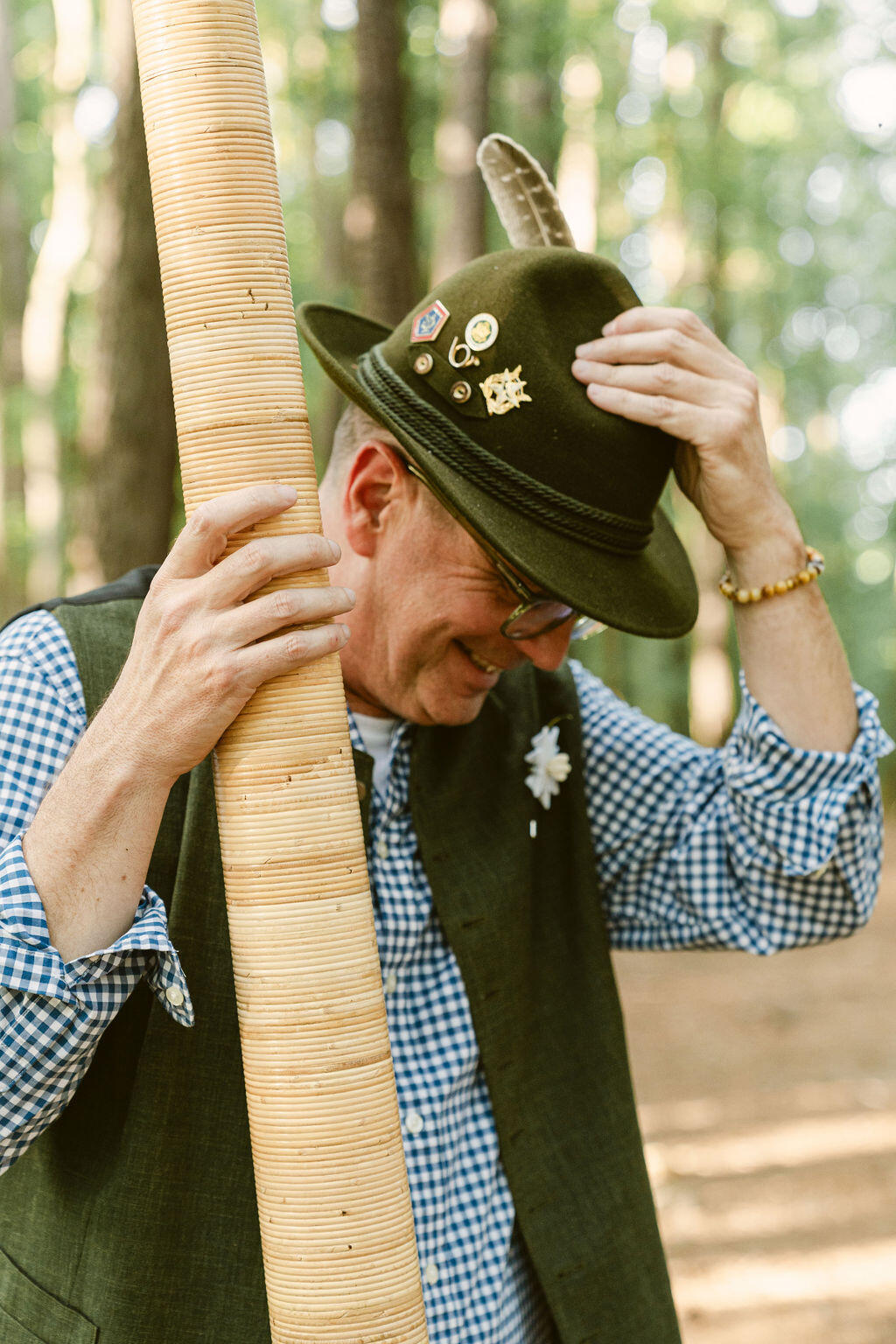 Roland Zahner, the craftsman of Helvetic, is the kind-hearted gentleman who built my Swiss stone pine Alphorn. I believe his quality of character can be heard in his beautiful horns. They have a warm vibrant sound, and feel light and nimble to play. When I first tried my horn, I felt I had found a kindred spirit, an expressive partner for this journey. Roland's horns are available through The Alphorn Institute.